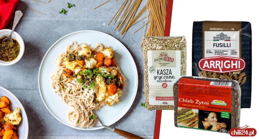 Boisz się uczucia głodu na diecie odchudzającej? Jedz więcej warzyw i produktów pełnoziarnistych, które sycą na dłużej, a przy tym są bogatym źródłem witamin i minerałów. Warzywa są niskokaloryczne – to świetny sposób, aby zwiększyć objętość posiłków, bez szkody dla bilansu energetycznego. Produkty pełnoziarniste – kasze, makarony, płatki zbożowe, mąki – zawierają błonnik, który wspomaga odchudzanie. Pełne ziarna są bardziej pożywne od oczyszczonych zbóż i zawierają węglowodany złożone, które dostarczają energii na dłuższy czas. Więcej o roli błonnika w diecie pisaliśmy wcześniej.