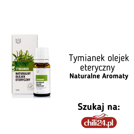 Tymianek to nie tylko pięknie pachnąca przyprawa. Jego aromat pochodzi od olejku tymolowego, który w zestawieniu z flawonoidami, witaminami z grupy B i witaminą C, a także fenolokwasami o działaniu odkażającym i triterpenami o działaniu antyoksydacyjnym, wykazuje właściwości przeciwbakteryjne i przeciwzapalne. Ziele tymianku dodatkowo chroni śluzówkę i ułatwia odkrztuszenie zalegającej w gardle wydzieliny. Tymianek można wykorzystać do przygotowania płukanki oraz naparu i syropu do picia.
